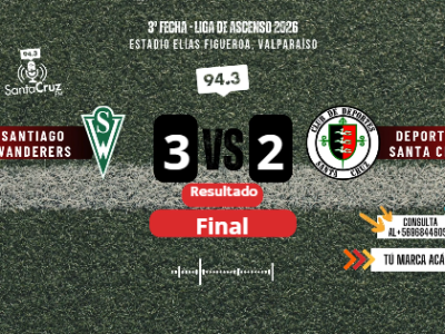 Deportes Santa Cruz cayó 3-2 ante Santiago Wanderers en Valparaíso.
