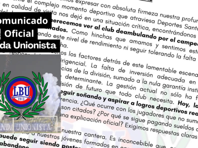 Con un comunicado oficial difundido esta semana, la Banda Unionista —principal barra de Deportes Santa Cruz— expresó su profunda preocupación por el delicado momento que... Leer Más