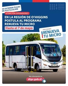 El Ministerio de Transportes y Telecomunicaciones en conjunto con el Gobierno Regional de O’Higgins ha extendido el plazo de postulación al Programa Renueva Tu Micro